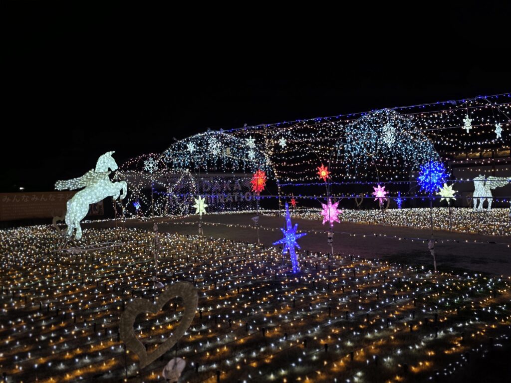 目的地は、冬の風物詩として親しまれている「あかりのファンタジーイルミネーション in おだか」。 実際に訪れてみると、想像以上に綺麗で感動しました!