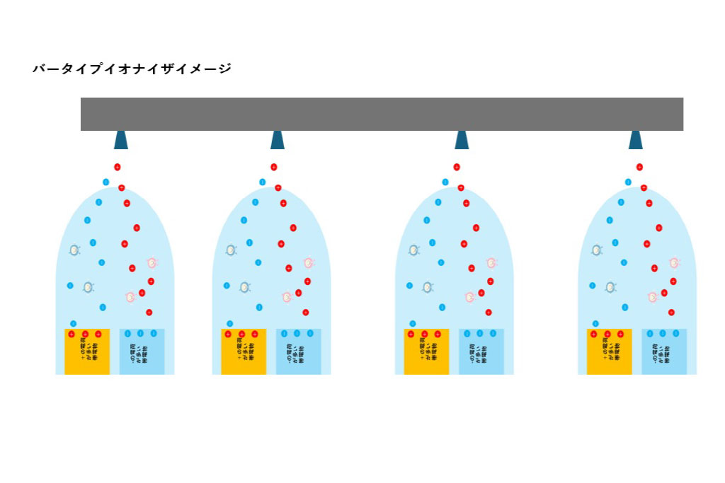 この結果、プラスの電気を帯びた「プラスイオン」と、マイナスの電気を帯びた「マイナスイオン」が生成されます。
