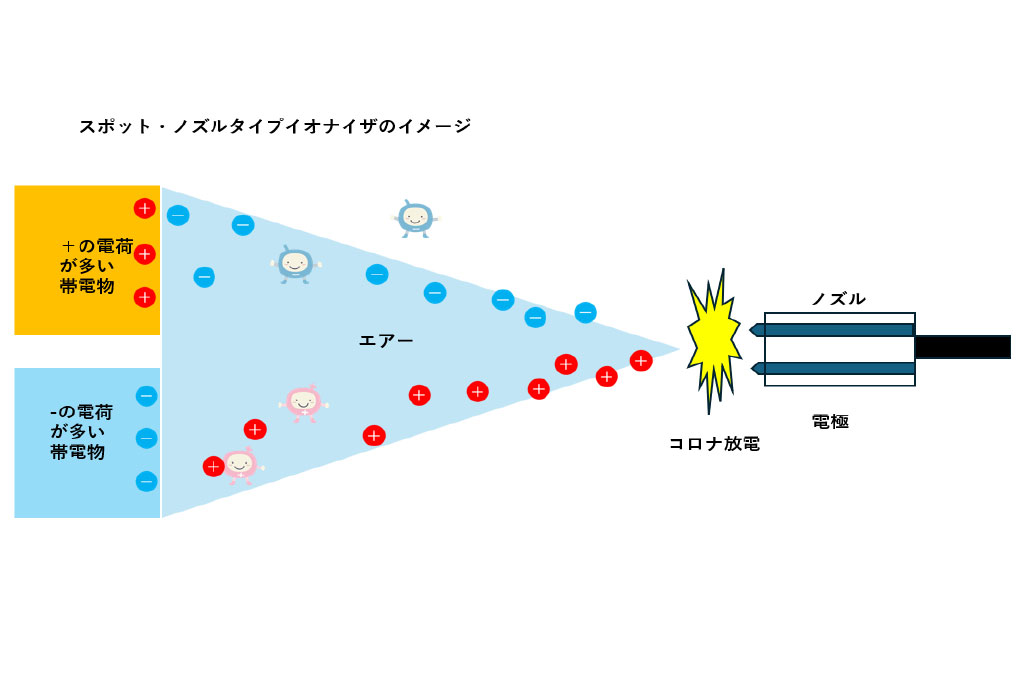 特徴: ノズルの先端から、狙った場所にピンポイントでイオンを照射します。