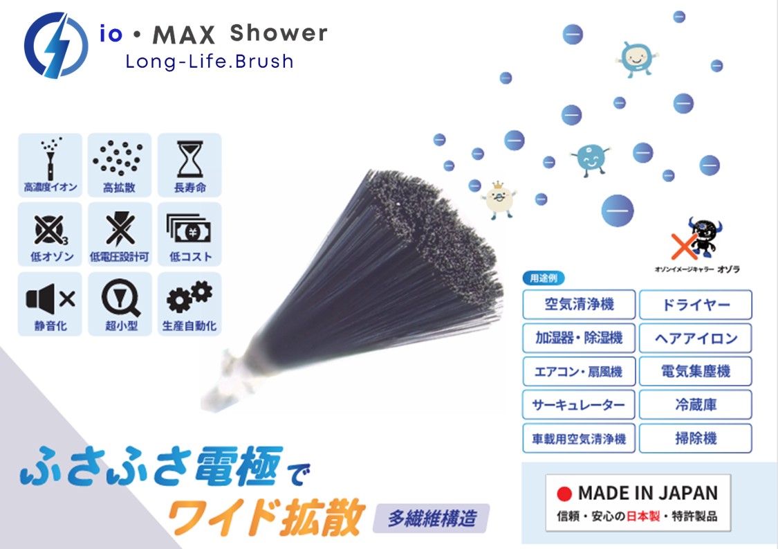 イオロープはケンエーが開発したオリジナルの除電ひもです。導電性繊維で素早く除電ができる上に、好きな場所に取付可能です。自己放電式なので、電源設備等不要で導入コストを抑えることができます。